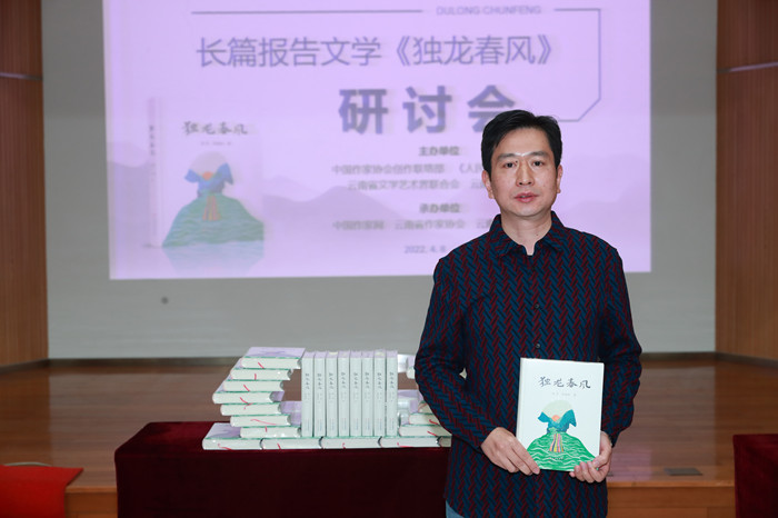 研討會最后,段愛松詩意、深情地回憶了與潘靈共同寫作的歷程。他在答謝辭中說,寫?yīng)汖堊宓墓适掠谒允菣C緣巧合,但卻是他一生難忘的事?!霸谒嘘P(guān)于獨龍族的歷史中,沒有任何一個時期有現(xiàn)在這般發(fā)人深省,一個曾經(jīng)快要滅絕的弱小民族,在不斷尋找生存發(fā)展的機會中,如何抬起了頭、挺高了胸、邁開了步,勇敢地、有尊嚴(yán)地站在了時代的面前,這個答案就藏在《獨龍春風(fēng)》里,”段愛松表示,獨龍族的發(fā)展跨越的確是一個奇跡,一個只有在中國才能創(chuàng)造的奇跡。“感謝……是文學(xué)讓我遇到了《獨龍春風(fēng)》;是你們,讓我在文學(xué)的道路上,遇見了真正的自己?!?/p>