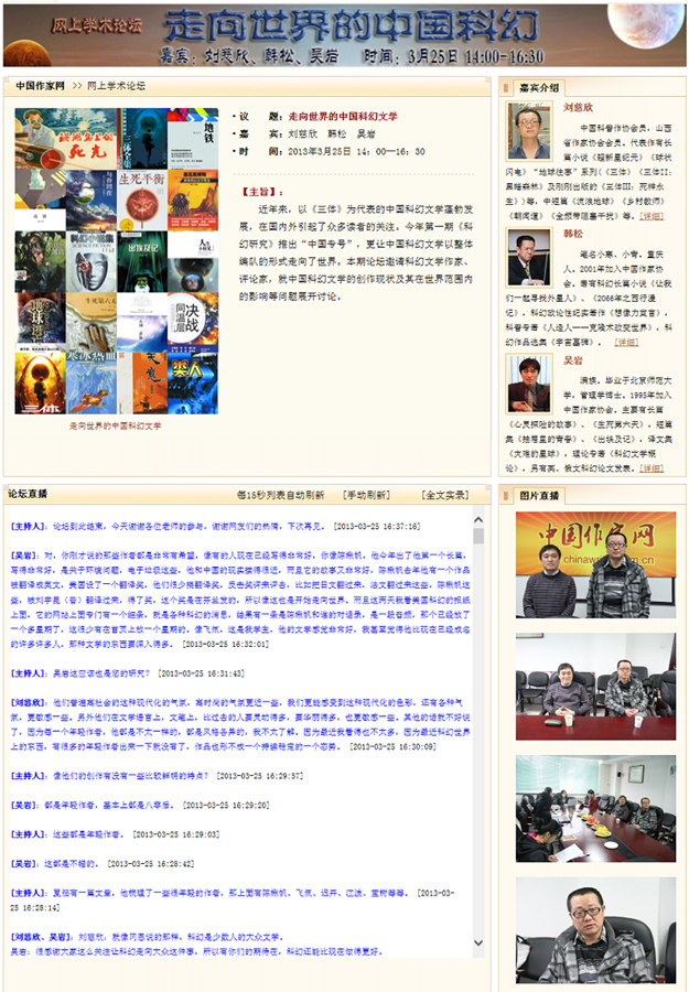 2013年中國作家網(wǎng)舉辦網(wǎng)上學(xué)術(shù)論壇
