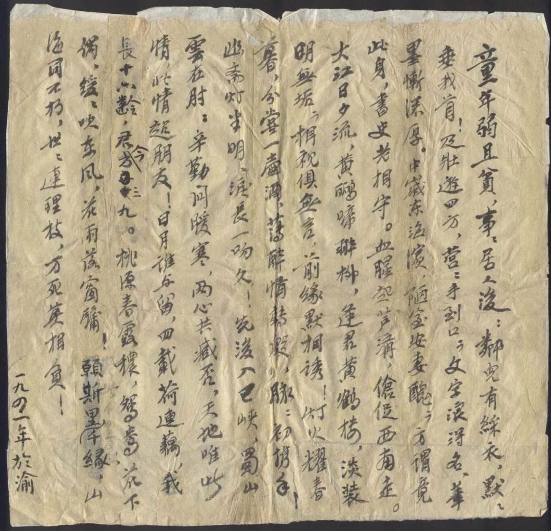 老舍回到重慶以后,可能給趙清閣寫信說明未能再回北碚的原因,但這封信只有留下談皖南事變和有贈趙清閣一首人名詩的那一半,另一半未能留下,可能和其他的老舍書信一起被趙先生在去世前毀掉了。對這半封信我曾經(jīng)為文介紹(見《現(xiàn)代中文學(xué)刊》2013年第2期)其中的人名詩是: