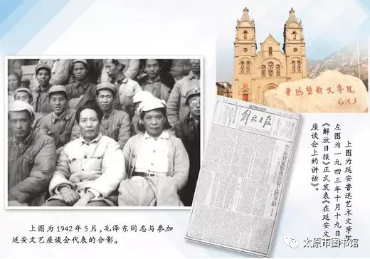 1942年5月2日至23日,毛澤東在延安主持召開(kāi)文藝座談會(huì)并發(fā)表了重要講話,講話內(nèi)容經(jīng)過(guò)修改完善后發(fā)表在《解放日?qǐng)?bào)》上,被稱(chēng)為《在延安文藝座談會(huì)上的講話》,后又收錄在《毛澤東選集》第三卷。