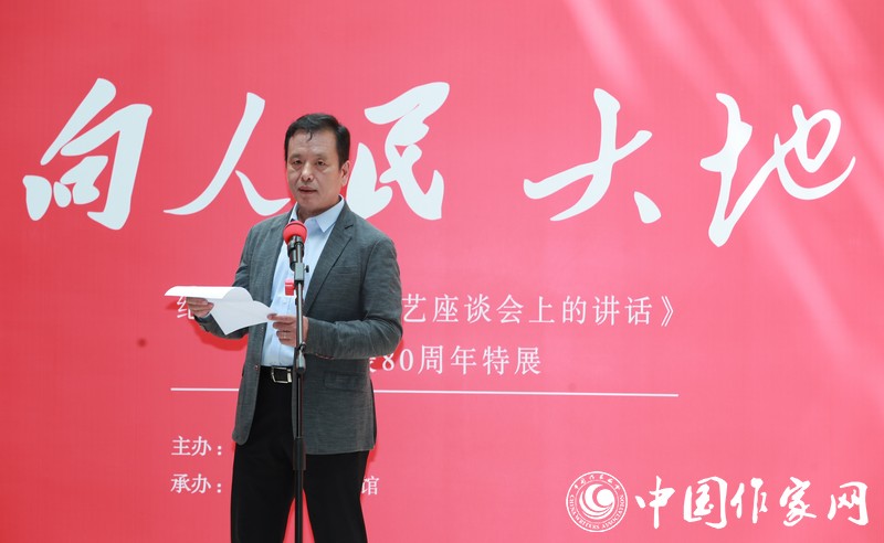 鐵凝在致辭中表示,中國作協(xié)舉辦此次特展,旨在回顧中國文學(xué)80年來走過的光榮道路,感受《講話》持久的思想光芒和跨越時(shí)空的力量,進(jìn)一步深刻理解習(xí)近平總書記關(guān)于文藝工作的重要論述,昂揚(yáng)奮進(jìn),在新時(shí)代新征程上創(chuàng)造中國文學(xué)的更大輝煌。她指出,1942年5月,在中華民族爭取民族獨(dú)立和人民解放的偉大斗爭中,毛澤東同志發(fā)表了《在延安文藝座談會(huì)上的講話》,有力回答了關(guān)于新的人民文藝的一系列重大原則問題,為中國革命文藝和社會(huì)主義文藝確立了前進(jìn)方向。此次特展展出了中國現(xiàn)代文學(xué)館館藏的200多件珍貴史料,再現(xiàn)了《講話》的歷史背景、發(fā)表和傳播過程,展示了《講話》對新的人民文藝的巨大推動(dòng)作用和其產(chǎn)生的世界意義。我們真切地看到,在《講話》精神的指引和鼓舞下,來自人民、為了人民的文學(xué)穿越戰(zhàn)火硝煙,傳遍中華大地,為抗戰(zhàn)發(fā)出怒吼,為人民抒寫心聲。80年來,一代又一代文藝工作者與人民同呼吸,與時(shí)代同步伐,矢志不渝投身于革命、建設(shè)、改革事業(yè),為增強(qiáng)人民力量、振奮民族精神發(fā)揮了重要作用。
