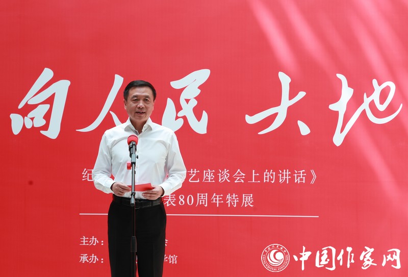 5月20日,由中國作協(xié)主辦、中國現(xiàn)代文學(xué)館承辦的“向人民大地——紀(jì)念《在延安文藝座談會(huì)上的講話》發(fā)表80周年特展”在京開幕。中國作協(xié)主席鐵凝出席開幕式并致辭。中國作協(xié)黨組書記、副主席張宏森宣布展覽開幕。開幕式由中國作協(xié)副主席、書記處書記李敬澤主持。中國作協(xié)黨組、書記處同志吳義勤、陳彥、胡邦勝、邱華棟、施戰(zhàn)軍、鄧凱出席開幕式。