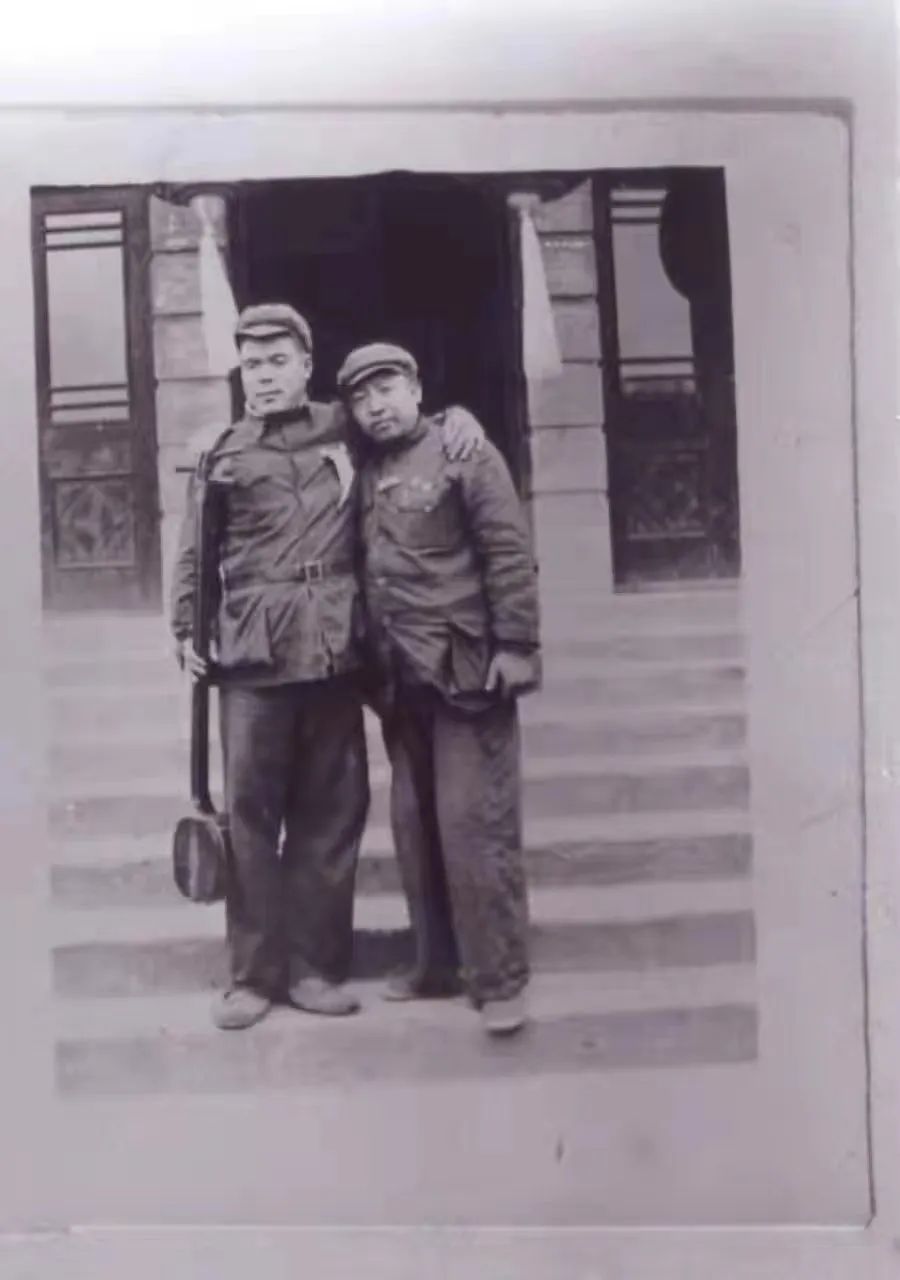 1950年,韓起祥(左)與陜北說書《劉巧團(tuán)圓》記錄整理者高敏夫(延安魯藝人)合影