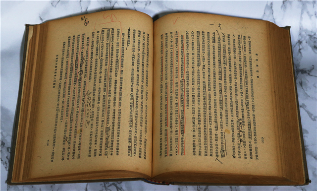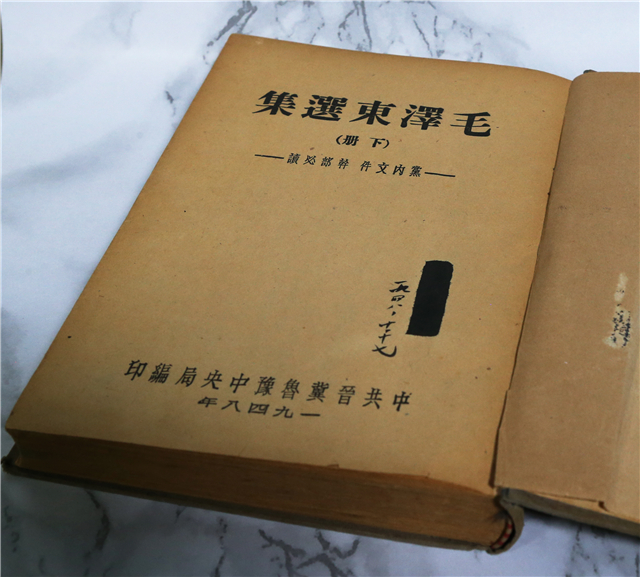 經過和魯藜家屬的求證,該書是魯藜同志當年在延安時期閱讀過的。書的扉頁上,還留有魯藜的簽名和時間。文革時,是魯藜自己把扉頁上的簽名勾掉?!吨v話》一篇中,還清晰地保留著當年魯藜閱讀和學習過的痕跡。魯藜同志把《講話》當作了自己創(chuàng)作奮進的一面旗幟,一生堅持著走中國革命的文藝道路。