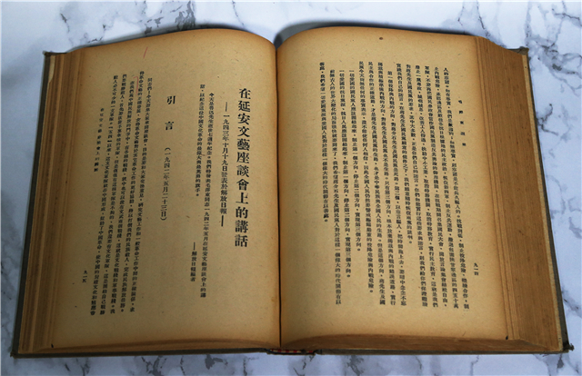 1942年,在抗日戰(zhàn)爭的艱苦歲月,毛澤東同志發(fā)表《在延安文藝座談會上的講話》,1943年10月19日,講話在《解放日報》上全文發(fā)表。最近,我在整理作家魯藜同志的作品時,發(fā)現了一本魯藜同志珍藏的1948年中共晉冀魯豫中央局編印的《毛澤東選集》,書中載錄了《講話》全文。