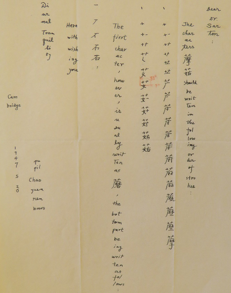 圖1 趙元任致薩頓的信(1947年5月20日)
