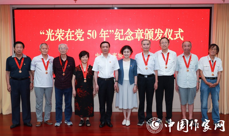 6月29日,中國作協(xié)在京開展“七一”主題黨日活動(dòng),向中國作協(xié)“光榮在黨50年”的老黨員代表頒發(fā)紀(jì)念章