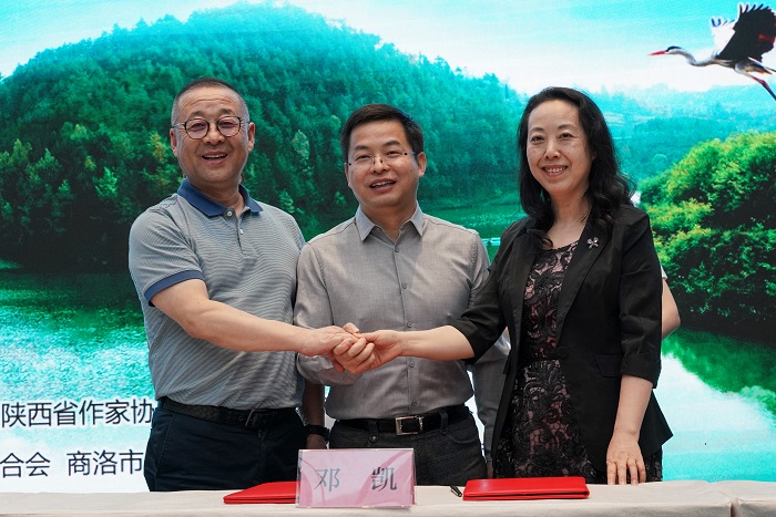 授牌儀式上,鄧凱、齊雅麗代表中國作協(xié)和陜西作協(xié)與商洛市簽訂“新時代文學(xué)實踐點”三方合作協(xié)議。鄧凱和賈平凹分別向商洛市頒授了中國作家和陜西作家“深入生活 扎根人民”新時代文學(xué)實踐點牌匾。