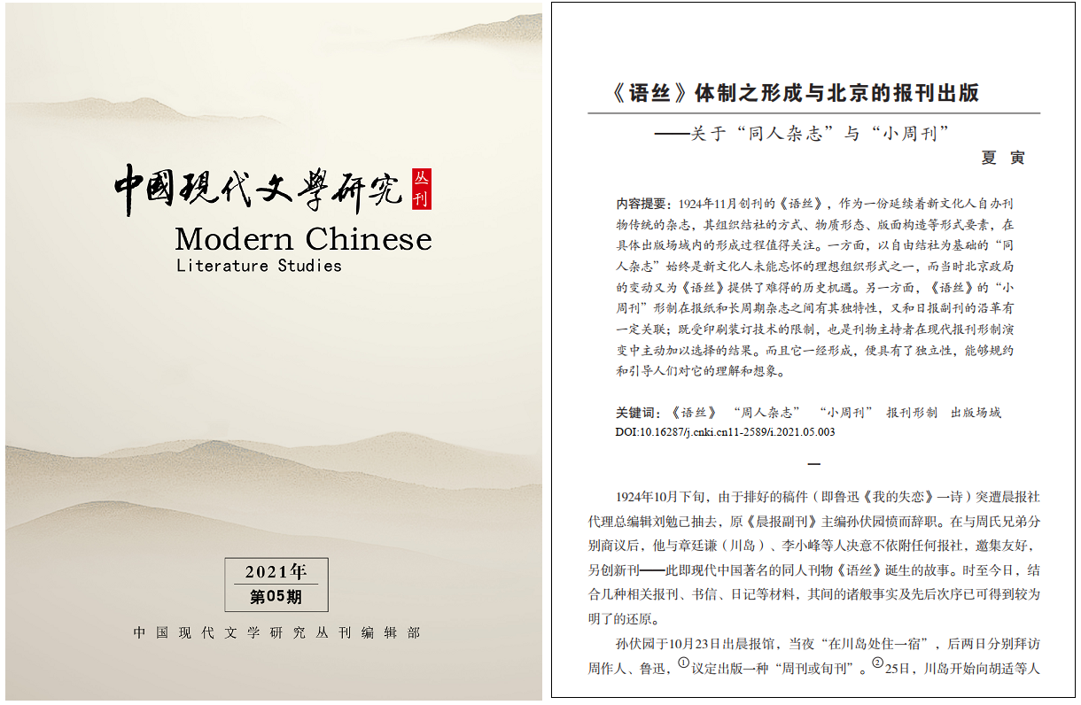 中國作家網(wǎng):你的獲獎(jiǎng)作品是《〈語絲〉體制之形成與北京的報(bào)刊出版——關(guān)于“同人雜志”與“小周刊”》(《叢刊》2021年第5期),請(qǐng)向讀者簡(jiǎn)單介紹下這篇文章的內(nèi)容和寫作過程。