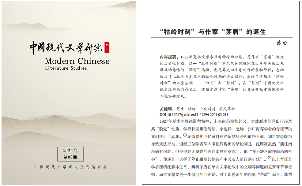 《中國(guó)現(xiàn)代文學(xué)研究叢刊》2021年度論文獎(jiǎng)“博士生獎(jiǎng)”訪談—— 蘇心:從茅盾先生的姿態(tài)和經(jīng)歷中汲取勇氣