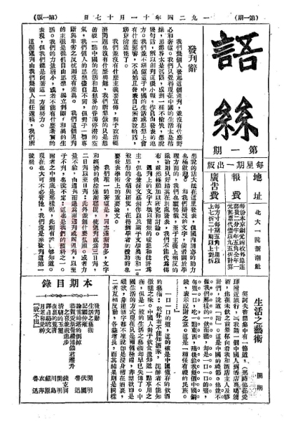 《語絲》創(chuàng)刊號(hào)首頁(yè)