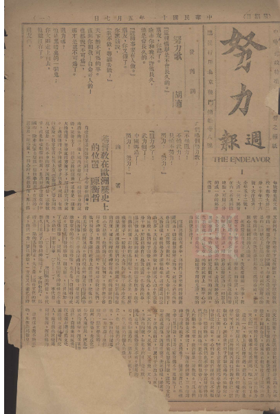 《努力周報(bào)》創(chuàng)刊號(hào)首頁(yè)