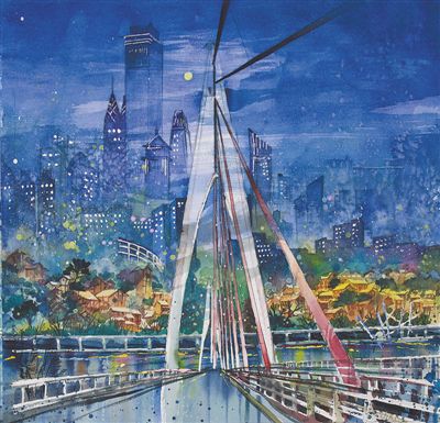 對(duì)城市綠色空間和自然景觀的描繪,既反映出當(dāng)代美術(shù)工作者對(duì)生態(tài)環(huán)境保護(hù)與建設(shè)的高度關(guān)注,也為山水城市留下了多彩的視覺(jué)記錄。在這一系列創(chuàng)作中,“城市山水畫(huà)”作為年輕的繪畫(huà)類(lèi)型,其表現(xiàn)題材和創(chuàng)作技法伴隨城市更新而更新,在一定程度上推動(dòng)了傳統(tǒng)山水畫(huà)的創(chuàng)造性轉(zhuǎn)化、創(chuàng)新性發(fā)展,為當(dāng)代美術(shù)創(chuàng)作提供了借鑒。