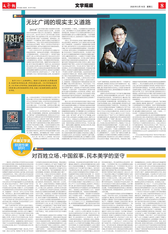 閻秋霞丨《張平:對百姓立場、中國敘事、民本美學(xué)的堅守》
