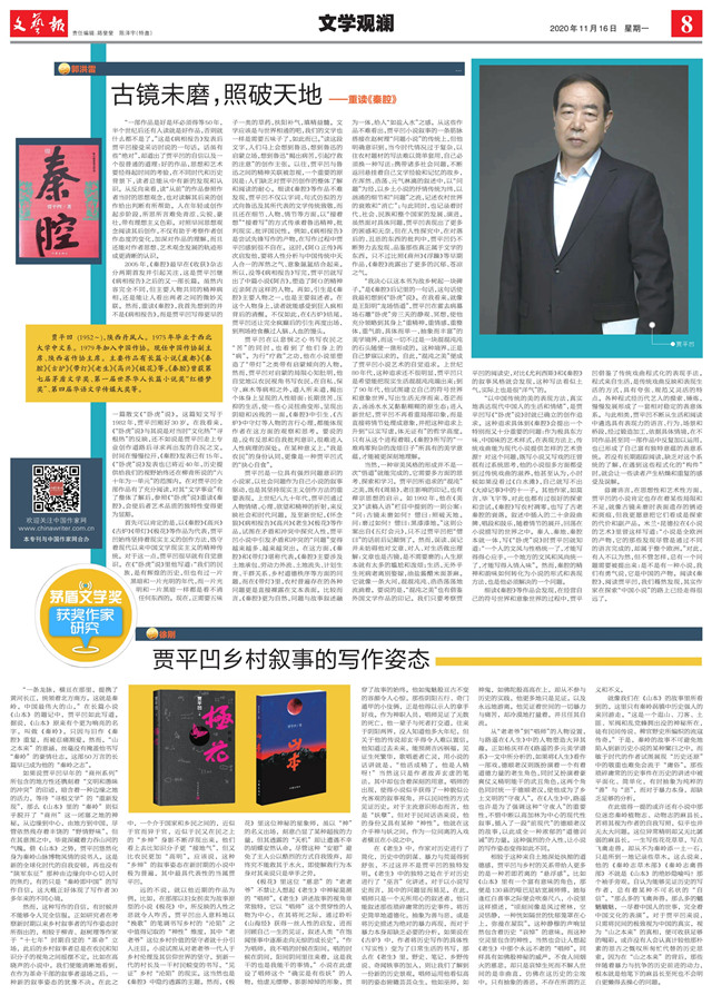 “茅盾文學(xué)獲獎作家研究”之賈平凹(2020年11月16日)