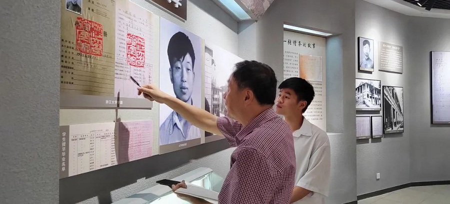 作家蔡飛躍在林俊德科學(xué)家精神教育基地采訪相關(guān)人員