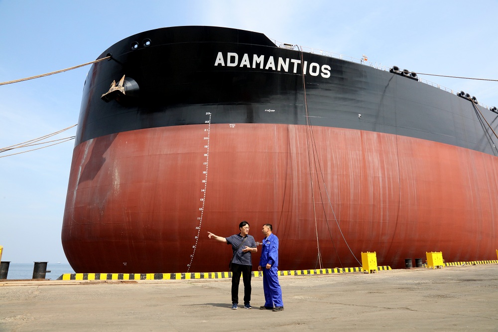 2022年7月25日下午,作家于永鐸采訪了大連船舶工業(yè)集團(tuán)船塢二部,這個(gè)部門(mén)擁有“神州第一塢”,是大連船舶重工集團(tuán)建造30萬(wàn)噸油輪的主力部門(mén)。副首席技師宋忠偉同志詳細(xì)介紹了我國(guó)自主設(shè)計(jì)的100艘30萬(wàn)噸油輪的建造全過(guò)程。圖中就是剛剛建造完成的第100艘30萬(wàn)噸油輪,這艘油輪下水試航歸來(lái),各項(xiàng)指標(biāo)正常。