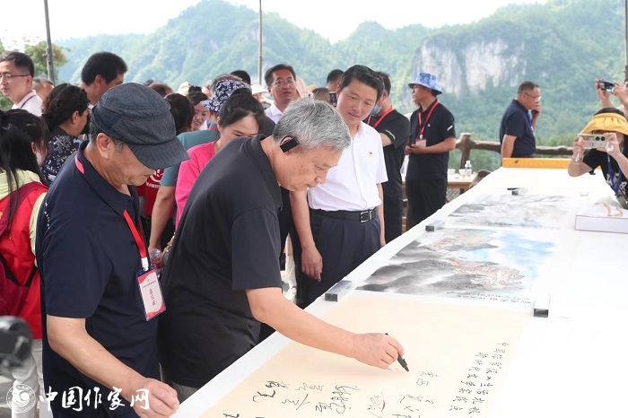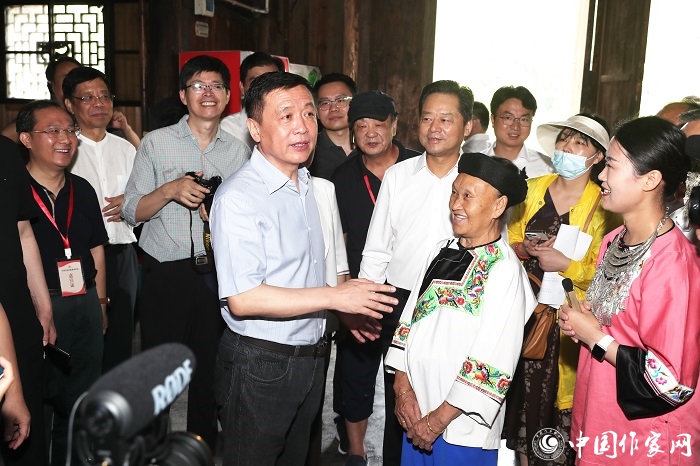 7月30日,中國作協(xié)黨組書記、副主席張宏森帶領(lǐng)中國作協(xié)黨組書記處同志、主席團(tuán)成員、各團(tuán)體會員單位負(fù)責(zé)人、各單位各部門負(fù)責(zé)人等,赴十八洞村實地調(diào)研、采訪。大家走進(jìn)梨子寨感恩坪廣場、主題郵局、村鎮(zhèn)銀行、幸福人家,聽村民們滿懷深情講述起總書記同他們親切交談、共商脫貧大計的場景,看苗家姑娘用動聽的歌聲唱起《我和我的祖國》,身入心入情入實地感悟十八洞村發(fā)生的翻天覆地的變化。