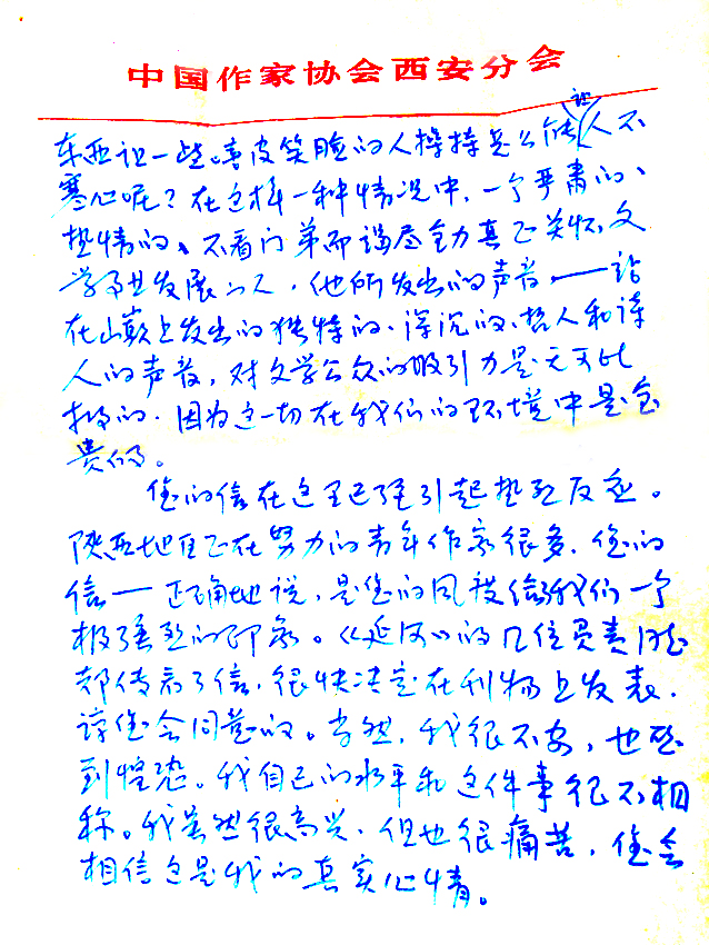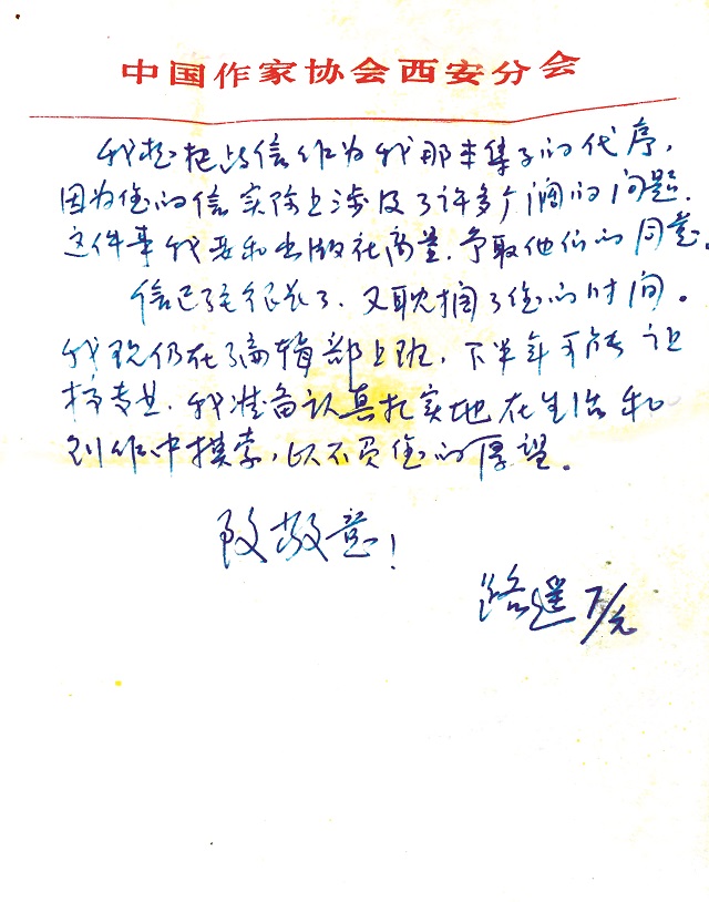 信已經(jīng)很長了,又耽擱了您的時間。我現(xiàn)仍在編輯部上班,下半年可能讓搞專業(yè),我準備認真扎實地在生活和創(chuàng)作中摸索,以不負您的厚望。
