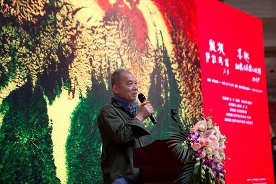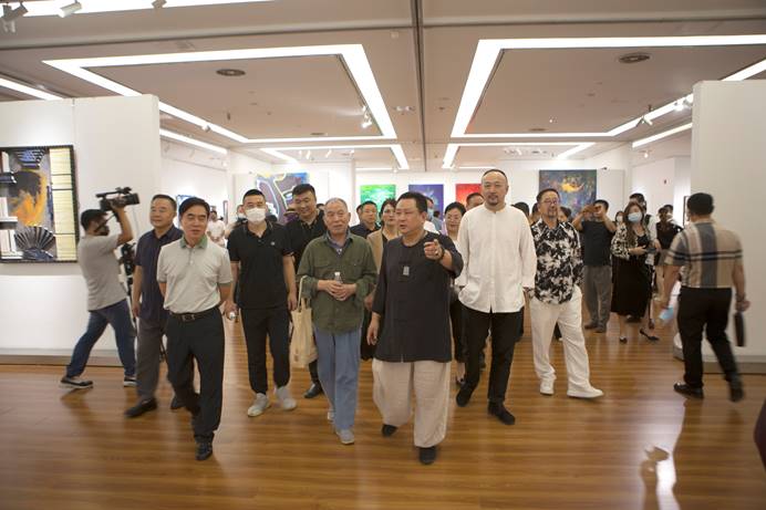 開幕式上,漫畫家蔡志忠發(fā)來視頻賀辭。作家梁曉聲,國家發(fā)改委書畫協(xié)會會長王思強,中國世界民族文化交流促進(jìn)會副會長兼秘書長邱麗,中央美術(shù)學(xué)院教授、喀什大學(xué)美術(shù)與設(shè)計學(xué)院院長薛云祥,中國畫大師黃胄之女梁纓,廣西大家育才教育投資有限公司董事長傅連城,畫家賀鵬飛先后發(fā)表致辭。王思強還代表中國美協(xié)駐會副主席、黨組書記馬鋒輝對本次畫展表示祝賀。文化和旅游部原黨組成員、中國非物質(zhì)文化遺產(chǎn)保護協(xié)會會長王曉峰宣布畫展開幕。