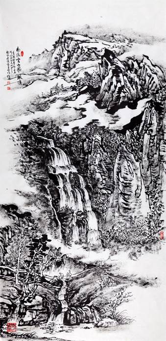 韓紹先 《南雁云山飛銀瀑》 紙本水墨 180×89cm 2022