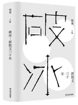 《破冰:新散文三十年》是由祝勇主編的一部獻(xiàn)給“新散文”三十年的紀(jì)念集,收錄鐘鳴、于堅(jiān)、馮秋子、寧肯、張銳鋒、蔣藍(lán)、祝勇、周曉楓八位“新散文”代表作家的代表篇目,以此描摹“新散文”創(chuàng)作三十余年的吉光片羽?!靶律⑽摹鄙钌罡仓腥A大地,行走于華夏自然山川,跋涉于社會(huì)現(xiàn)實(shí)生活,在“新散文”里,我們看得到孔子、莊子的影子,也看得到卡夫卡、博爾赫斯、曼德爾斯塔姆的影響,更看得到“新散文”作家們復(fù)雜、迷離的主體世界?!靶律⑽摹蓖嗜チ水?dāng)初的新銳青澀,成長(zhǎng)為一個(gè)強(qiáng)大的精神主體,生成了一個(gè)具有超大能量的內(nèi)宇宙,代表著一種新的觀念、方向、高度,是中國(guó)散文通向未來(lái)的道路,也是中國(guó)文學(xué)在經(jīng)歷先鋒文學(xué)的青春沖動(dòng)之后的一次再出發(fā)。