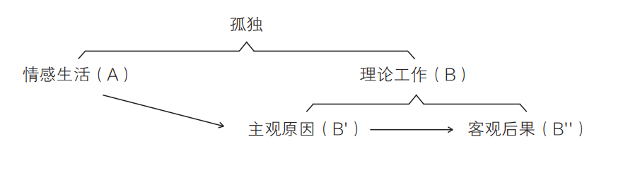 在《來日方長》里,孤獨(dú)的主題實(shí)際上具有雙重的悖論性。它把一個(gè)共同的結(jié)構(gòu)不僅賦予了阿爾都塞的情感生活(A)和理論工作(B)這兩個(gè)不同的方面,而且賦予了理論工作的私人、主觀的原因(B′)和公共、客觀的后果(B″)這兩個(gè)不同的領(lǐng)域。我們在“最偉大的哲學(xué)家都是天生沒有父親的”那段話里所指出的“巨大的跨越”,并非發(fā)生在A和B之間,而是發(fā)生在A→B′和B″之間,即主體和完全在其主觀性之外所發(fā)生的事情之間: