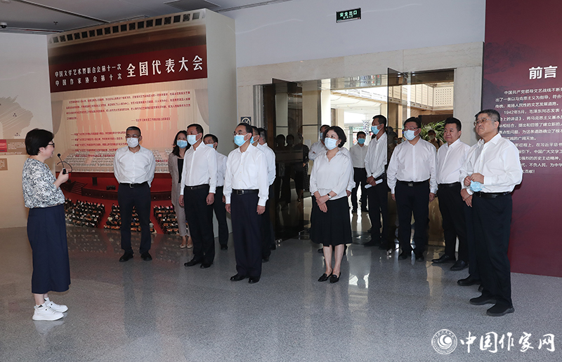徐麟、鐵凝、張宏森等還參觀了“向人民大地——紀念《在延安文藝座談會上的講話》發(fā)表80周年”特展,中國現(xiàn)代文學館館藏書畫、手稿,作家塑像,中國現(xiàn)當代文學展,作家書房展等,全面了解中國現(xiàn)當代文學的發(fā)展歷程、光輝成就和偉大精神,進一步領會習近平總書記關于文藝工作的重要論述,深刻感受一百年來廣大文藝工作者在革命、建設、改革各時期和中國特色社會主義新時代所作出的偉大貢獻。