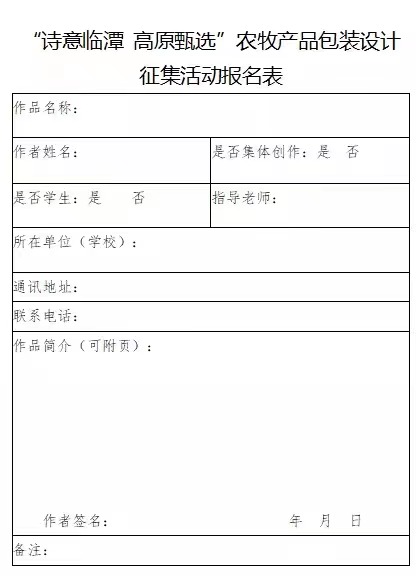 “詩意臨潭 高原甄選”農(nóng)牧產(chǎn)品包裝設(shè)計征集活動報名表。