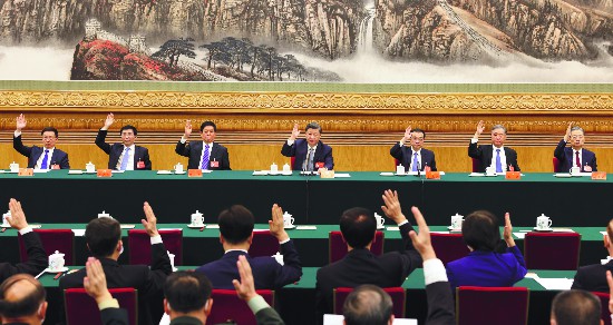 隨后,會議在習(xí)近平同志主持下進行了各項議程。會議以舉手表決方式通過了丁薛祥、陳希、郭聲琨、黃坤明為大會副秘書長。