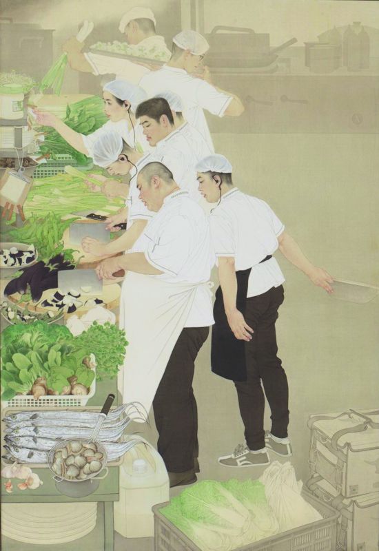 陳治、武欣《零點(diǎn)》《兒女情長(zhǎng)》《尖峰食刻》,王珂《都是熱血兒郎》,李玉旺《使命》,孫震生《雪域歡歌》等,這些在近幾屆全國(guó)美展中涌現(xiàn)出來(lái)的深受好評(píng)的中國(guó)畫之所以能夠打動(dòng)人,還在于作品所描寫的城市生活、所塑造的青年人既充滿了青春活力,更表現(xiàn)了經(jīng)濟(jì)社會(huì)中青年一代應(yīng)有的社會(huì)擔(dān)當(dāng)?!读泓c(diǎn)》在日本巡展時(shí)被高度關(guān)注,這件作品所繪寫的中國(guó)城市青年生活是如此現(xiàn)代、時(shí)尚,而又如此深情和溫馨,刷新了國(guó)外民眾對(duì)中國(guó)現(xiàn)代生活的認(rèn)知。畫面對(duì)工筆人物形象塑造的語(yǔ)言探索,也因承載有溫度的中國(guó)現(xiàn)實(shí)生活而增強(qiáng)了藝術(shù)感染力。事實(shí)上,新時(shí)代中國(guó)畫最惹人注目的領(lǐng)域已從水墨寫意畫轉(zhuǎn)向重彩工筆畫。當(dāng)代形態(tài)的重彩工筆畫對(duì)再現(xiàn)深度的發(fā)掘取得了前所未有的成就,它不僅汲取了中國(guó)古代壁畫養(yǎng)分,而且借鑒了歐洲早期文藝復(fù)興坦培拉畫法和簡(jiǎn)約立體的造型語(yǔ)言。而這種語(yǔ)言的探索正是中國(guó)快速發(fā)展、提升民眾現(xiàn)代生活品質(zhì)的一種審美折射,是新興的現(xiàn)代城市視覺文化在工筆畫領(lǐng)域的審美新創(chuàng)造。工筆畫甚至比寫意畫更具備后現(xiàn)代藝術(shù)的觀念性,具象描繪卻充滿了象征和隱喻,這使得工筆畫從藝術(shù)語(yǔ)言到表現(xiàn)觀念進(jìn)行了多層面、多維度的轉(zhuǎn)換與拓展,從而賦予當(dāng)代中國(guó)畫以多種文化藝術(shù)的兼容性。
