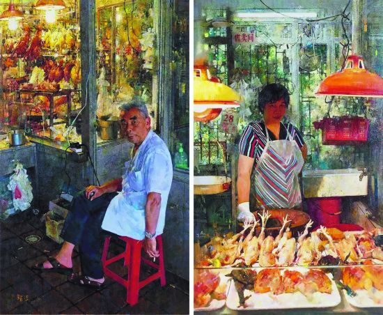 從李節(jié)平《小夫妻》、李智華《老廣東,小生活》到陸慶龍《格?;ㄩ_》、于小冬《教室的陽(yáng)光》等油畫作品,從柳青《成果》到王比《好消息》等雕塑作品,從張玉惠《織情敘意》到頡元芳《遠(yuǎn)方》等漆畫、水彩畫作品,從彭偉《而立之年》到曹丹《陽(yáng)光下的大橋澆筑工》、沙永匯《金秋時(shí)代》等版畫作品,在近幾屆全國(guó)美展中嶄露頭角的美術(shù)作品,大多以描繪普通民眾的日常來(lái)展現(xiàn)民生變遷,通過(guò)美術(shù)家的描繪呈現(xiàn)了一種質(zhì)樸的雋永?!缎》蚱蕖分皇谴蚬せ剜l(xiāng)終于蓋起了自己小巢的故事;《老廣東,小生活》在最常見的農(nóng)貿(mào)集市攤販中揭示了“小生活”的滋味;《教室的陽(yáng)光》所描寫的邊遠(yuǎn)鄉(xiāng)村那照進(jìn)教室的一縷陽(yáng)光揭示了鄉(xiāng)村教育的改善對(duì)孩子們童年的溫暖。這些作品沒有說(shuō)教,甚至也不訴諸外在的形式探索,卻以美術(shù)家對(duì)樸素生活的體味與發(fā)現(xiàn)來(lái)形成藝術(shù)感染力。或者說(shuō),蘊(yùn)含在這些作品中的感人的要素,不是視覺形式的凸顯,而是生活的真切感所形成的一種純粹而樸素的美。表現(xiàn)城市農(nóng)貿(mào)集市的《老廣東,小生活》《成果》等作品中,農(nóng)民或個(gè)體戶形象構(gòu)成了現(xiàn)代城市文化的鄉(xiāng)村記憶,蔬果與家禽構(gòu)成的菜肴味蕾同樣是滿足現(xiàn)代城市生活的重要組成,因而,這些美術(shù)作品也是真實(shí)揭示現(xiàn)實(shí)民生最接地氣的一種表現(xiàn)形態(tài)。