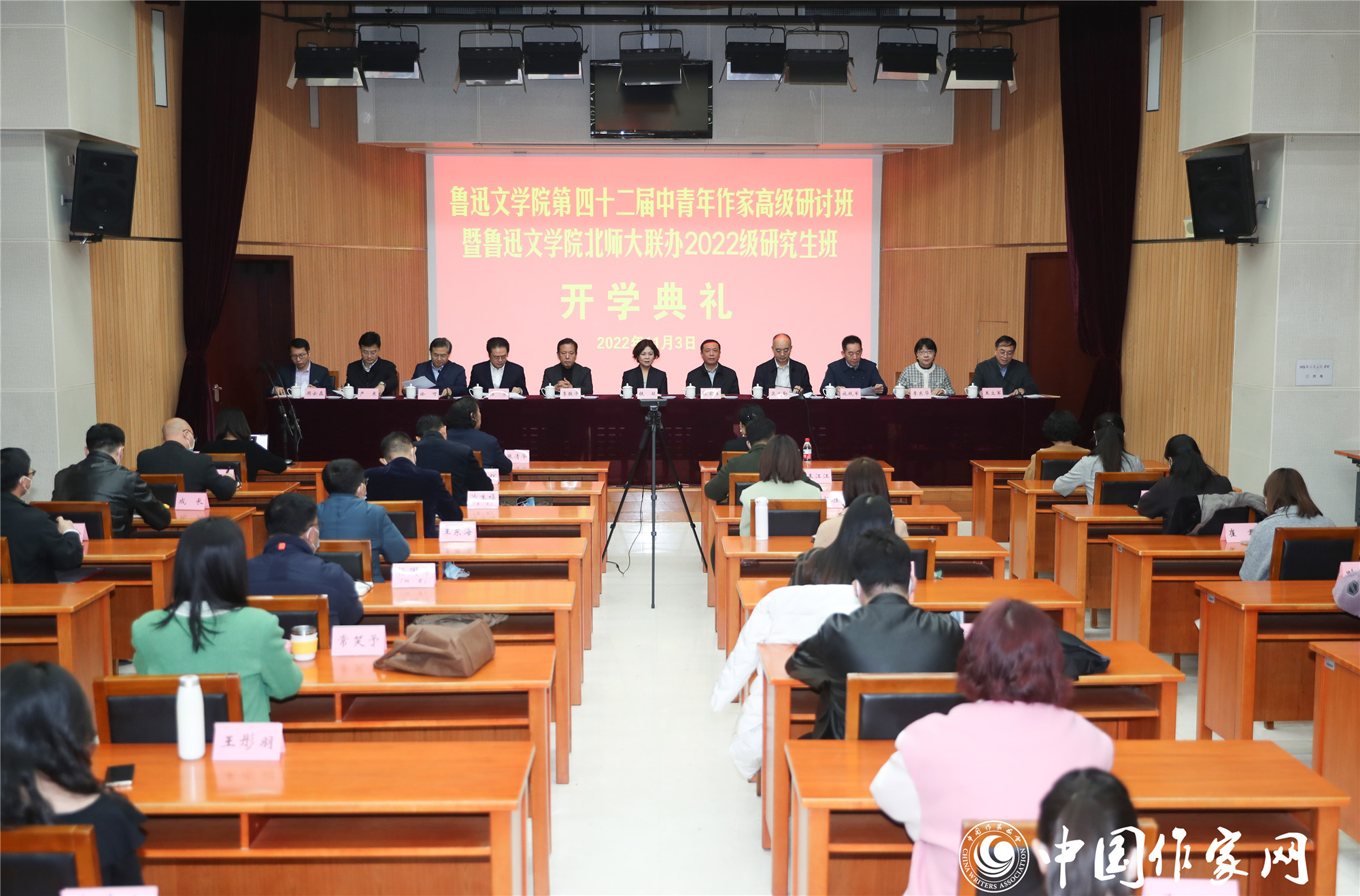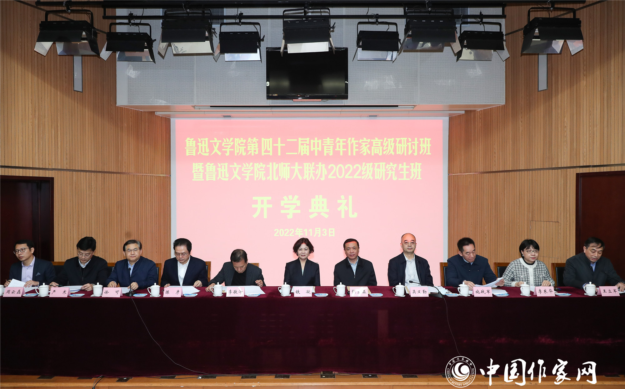 在黨的二十大勝利召開、全國(guó)文學(xué)界深入學(xué)習(xí)貫徹黨的二十大精神之際,又有兩批共56位來自全國(guó)各地的中青年作家相聚北京,開始了在魯迅文學(xué)院的學(xué)習(xí)生活。11月3日,魯迅文學(xué)院第四十二屆中青年作家高級(jí)研討班暨魯迅文學(xué)院北師大聯(lián)辦2022級(jí)研究生班開學(xué)典禮在京舉行。中國(guó)作協(xié)主席、中國(guó)文聯(lián)主席鐵凝,中國(guó)作協(xié)黨組書記、副主席張宏森,中國(guó)作協(xié)副主席李敬澤,中國(guó)作協(xié)副主席、魯迅文學(xué)院院長(zhǎng)吳義勤,中國(guó)作協(xié)副主席陳彥,中國(guó)作協(xié)書記處書記施戰(zhàn)軍等出席開學(xué)典禮,向?qū)W員們表示歡迎和祝賀。