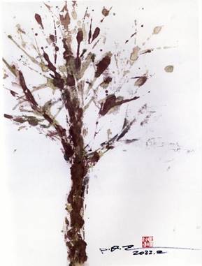 已86歲的魯光,畫思敏捷,即興隨意,作品卻寓意深刻。85歲的小說《畫魂》的作者石楠,77歲習(xí)畫,畫作色彩迷人。肖復(fù)興著作等身,畢業(yè)于戲劇學(xué)院,作品清一色戲畫,風(fēng)格獨具。趙麗宏的畫,與他的詩一樣,充盈著濃濃的文人氣。連輯畫閱歷,畫哲思,畫作厚重老辣。馮秋子的畫,像她優(yōu)美的散文,潑彩潑墨,抽象浪漫。