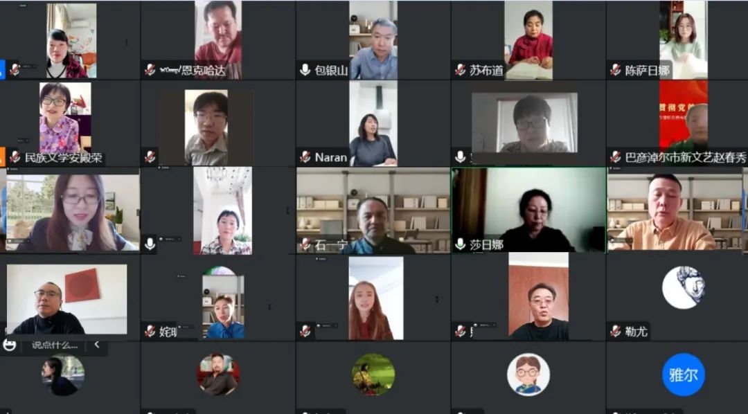《民族文學(xué)》副主編陳亞軍、一編室主任楊玉梅、一編室副主任永花、二編室副主任安殿榮、二編室編輯郭金達、一編室編輯柒樂根,《草原》副主編趙筱彬,《鹿鳴》主編蘇煜,《駿馬》主編晉銘,《鄂爾多斯》執(zhí)行主編劉軍,作者代表西·寶音陶格套,譯者代表紅英,從專欄作品的思想內(nèi)容、藝術(shù)特點及存在的問題,如何提升作品質(zhì)量等多角度多層面分別作重點交流發(fā)言。大家一致表示,要始終堅持以習(xí)近平新時代中國特色社會主義思想為指導(dǎo),把學(xué)習(xí)好宣傳好貫徹好黨的二十大精神貫穿于編輯、創(chuàng)作、翻譯中,凝心聚力,攜手推進“亮麗內(nèi)蒙古”翻譯作品專欄工作,關(guān)注現(xiàn)實,扎根人民,創(chuàng)作翻譯出更多體現(xiàn)新時代新發(fā)展新氣象的優(yōu)秀文學(xué)作品,奮力推進文化自信自強,為鑄牢中華民族共同體意識,構(gòu)筑各民族共有精神家園做出新的貢獻。
