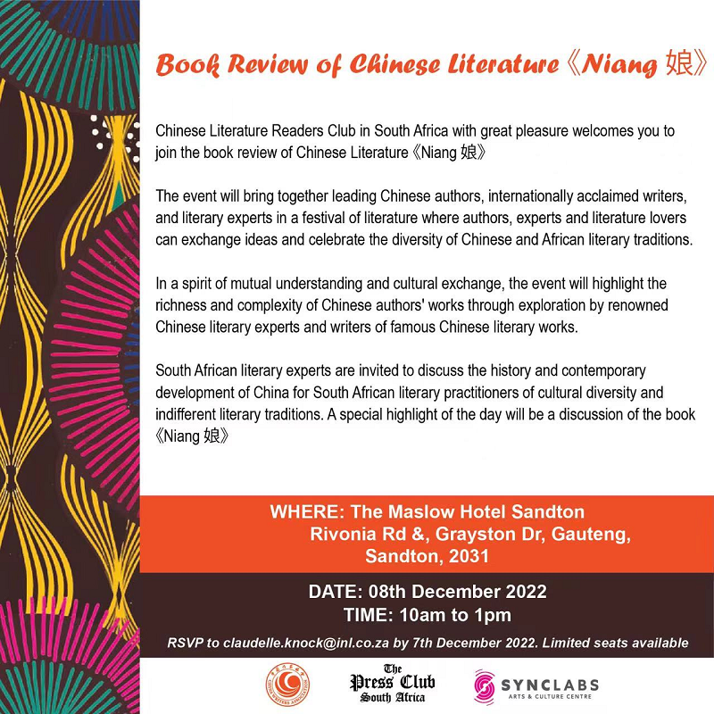 12月8日,南非“中國文學讀者俱樂部”在約翰內(nèi)斯堡舉辦成立以來的首場活動。活動由中國作家協(xié)會指導和支持,由“漢語橋”俱樂部(開普敦站)、南非《星報》聯(lián)合組織,以線上線下結(jié)合的方式,邀請作家彭學明在線參加,以“母愛的國際語言”為主題,對作品《娘》進行深入解讀和探討。來自南非社會各界人士,包括“漢語橋”俱樂部開普敦站會員、南非作家協(xié)會代表、南非《星報》主編、非洲青年企業(yè)家協(xié)會代表以及南非當?shù)睾吐媚系闹袊膶W愛好者踴躍參加,活動持續(xù)3個多小時,氣氛十分熱烈。