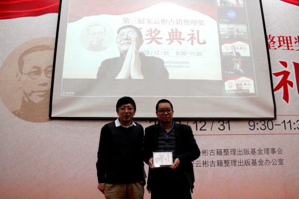 其實,人世間的一切事業(yè),只要你真心喜歡做,那就確確實實是以苦為樂,以苦為甜。我要感謝這個時代,給了我從事古籍整理的機會,更要感謝我的師長和好友,給了我無數(shù)的支持幫助和鼓勵,成果是重要的,但更寶貴的是人與人之間的情誼。感謝古籍規(guī)劃辦、古委會、上海古籍出版社、《四庫存目叢書》編委會,感謝圖書館古籍界的朋友,也感謝培養(yǎng)我、提攜我的山東大學的老師們領導們,最后特別感謝宋云彬古籍整理出版基金理事會,給了我這么大的榮譽。感謝宋云彬先生的家人,捐獻設立宋云彬古籍整理出版基金,我要向宋云彬先生學習,為古籍整理事業(yè)做出更多的貢獻。