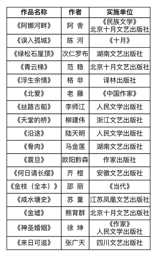 中國作家協(xié)會新時代文學攀登計劃第二期共收到新時代文學攀登計劃聯(lián)席會議成員單位申報的項目65個。經(jīng)評審委員會評審,并報中國作家協(xié)會書記處審批,確定17個項目入選。