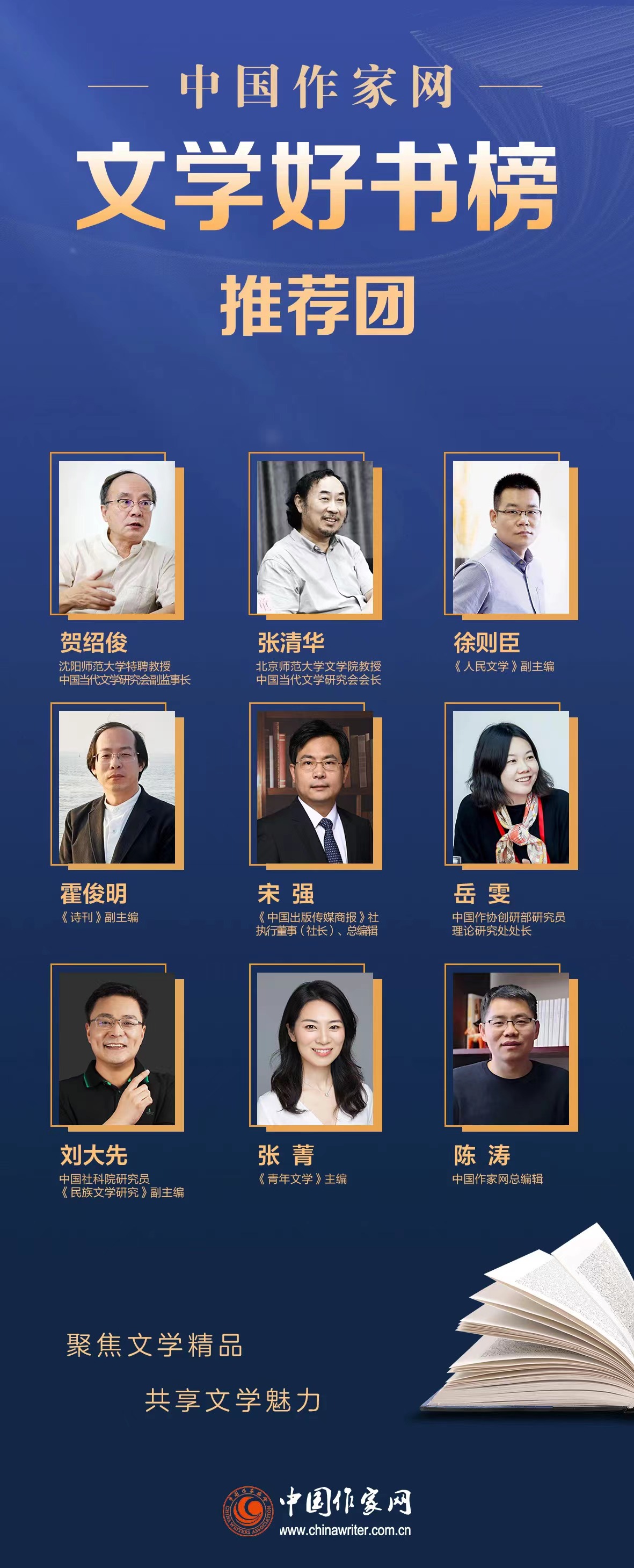“中國作家網(wǎng)文學(xué)好書榜”評(píng)選范圍僅限文學(xué)類作品,每兩個(gè)月評(píng)選一次。賀紹俊、張清華、徐則臣、霍俊明、宋強(qiáng)、岳雯、劉大先、張菁等深耕于文學(xué)現(xiàn)場(chǎng)的作家和評(píng)論家、媒體人,組成好書榜推薦團(tuán),以全面開放的視野、專業(yè)創(chuàng)新的眼光,發(fā)現(xiàn)能夠涵養(yǎng)、強(qiáng)健精神的優(yōu)秀作品。我們將從出版機(jī)構(gòu)和媒體中廣泛征集參評(píng)圖書,推薦團(tuán)成員在對(duì)參評(píng)圖書認(rèn)真閱讀的基礎(chǔ)上進(jìn)行定期的討論,從而評(píng)選出這兩個(gè)月內(nèi)新出版的10部優(yōu)秀中外文學(xué)類圖書,最終結(jié)果將以榜單的形式發(fā)布。年終,將綜合歷次推薦結(jié)果,呈現(xiàn)“中國作家網(wǎng)年度文學(xué)好書榜”。