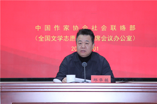 為貫徹落實(shí)黨的二十大報告中關(guān)于“完善志愿服務(wù)制度和工作體系”要求,推進(jìn)全國文學(xué)志愿服務(wù)制度化、規(guī)范化、常態(tài)化開展,提升文學(xué)志愿服務(wù)科學(xué)化和專業(yè)化水平,1月13日,中國作協(xié)社會聯(lián)絡(luò)部通過線上形式舉辦文學(xué)志愿服務(wù)工作推進(jìn)會暨全國文學(xué)志愿服務(wù)聯(lián)席會議專題培訓(xùn)班。中國作協(xié)書記處書記邱華棟出席會議并講話。
