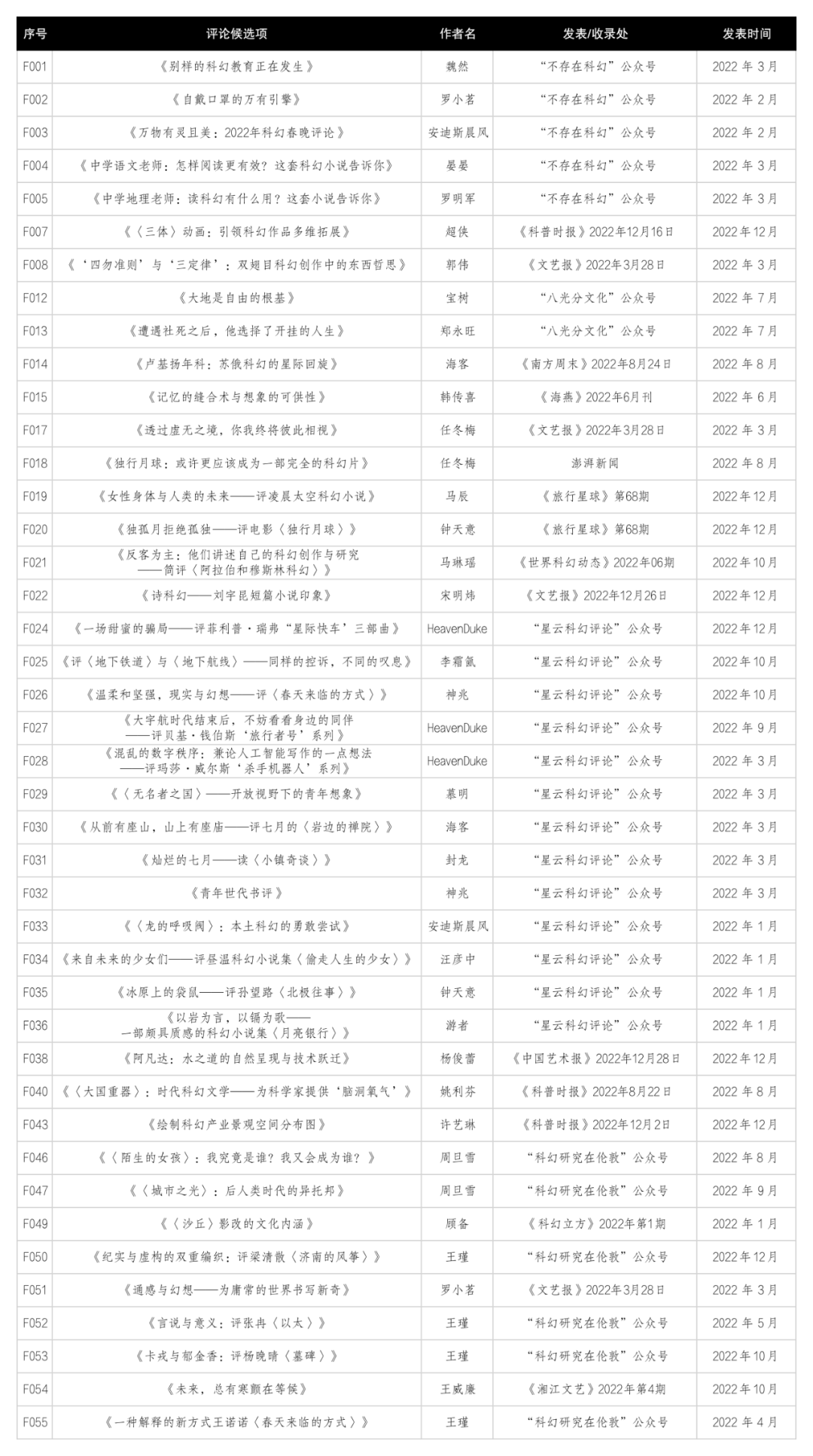 本屆獲得組織委員會資質認證的中篇和短篇小說非紙質專業(yè)發(fā)表平臺有八家。一部分屬于上一屆通過認證的平臺,經過更新補充資料,繼續(xù)維持資質認定;另一部分屬于新申請平臺,經過復核申請資料后也通過了資質認定,名單如下:蝌蚪五線譜;未來事務管理局“不存在科幻”微信公眾號;“八光分文化”微信公眾號和冷湖科幻文學獎;第十屆未來科幻大師獎;第十一屆光年獎;咪咕閱讀(包括《奇想》電子雜志);17K中文網(包括“奇想宇宙”和“謎想計劃”);愛奇藝小說。所有通過資質認證的平臺其申報后符合參評標準并通過候選資格復核的中短篇小說已經收入《候選參考名單》。