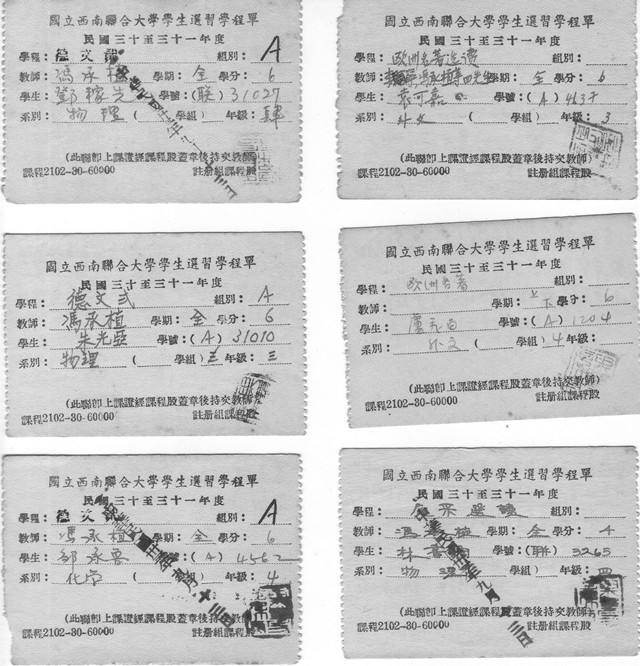 西南聯(lián)大學(xué)生選課卡正面及背面馮至研究杜甫手抄資料