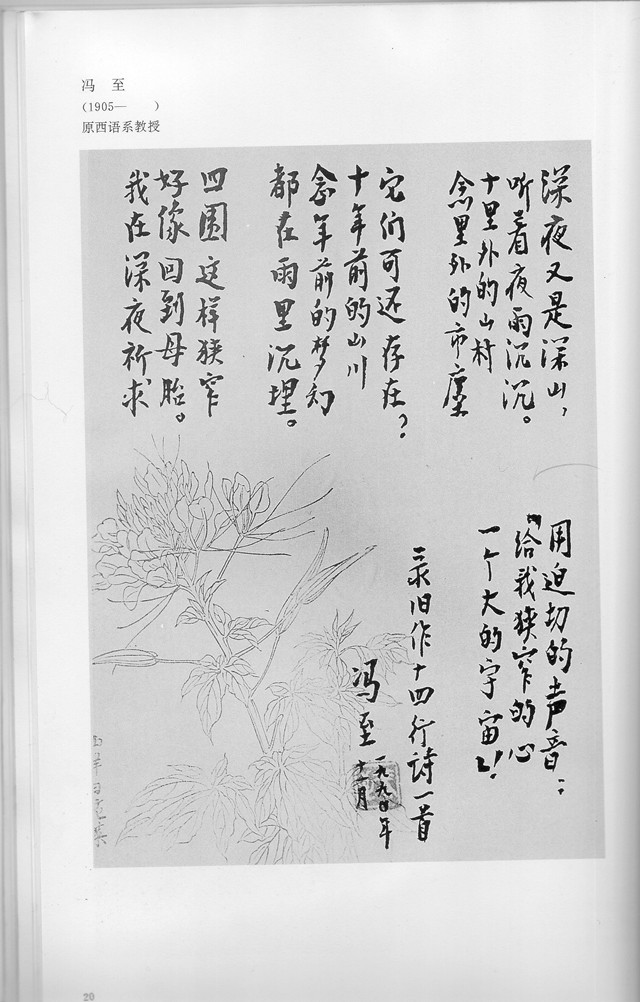 馮至手跡 十四行詩(shī)《深夜又是深山》