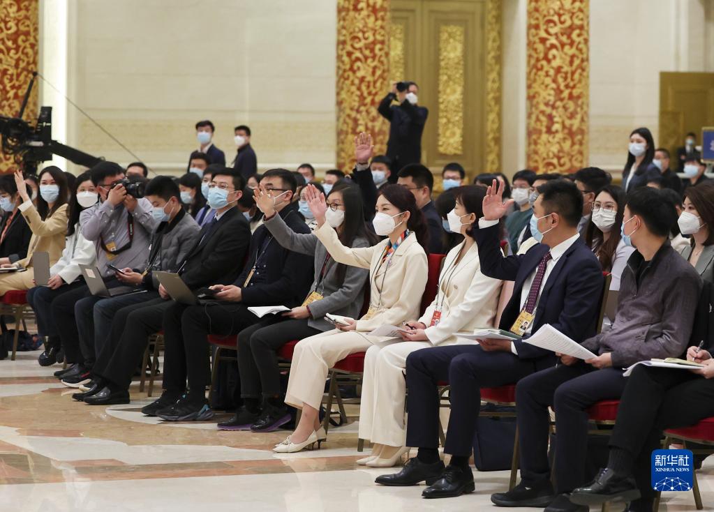 3月5日,全國(guó)政協(xié)十四屆一次會(huì)議在北京人民大會(huì)堂舉行民主黨派中央和全國(guó)工商聯(lián)領(lǐng)導(dǎo)人記者會(huì)。這是記者在舉手提問(wèn)?!⌒氯A社記者 曹燦 攝