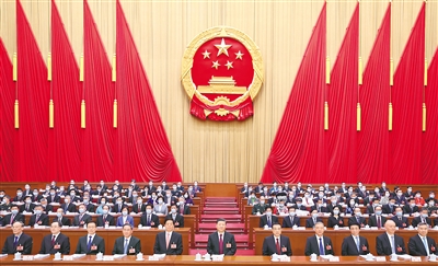十四屆全國人大一次會議在京開幕 習近平栗戰(zhàn)書汪洋李強王滬寧韓正蔡奇丁薛祥李希王岐山等在主席臺 李克強作政府工作報告 趙樂際主持大會 聽取關于立法法修正草案的說明等就座