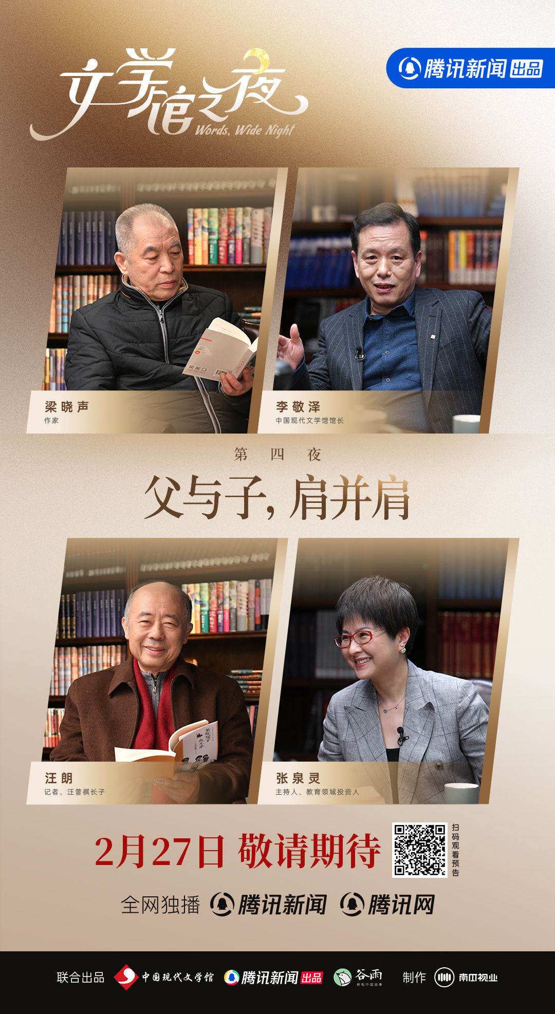 2月26日,隨著館長李敬澤再一次把手與巴金先生的手模印重合,《文學館之夜》來到了第四夜,節(jié)目從這一期起也正式宣告過半。如同清蒸魚的中段,盛宴中最細膩醇厚的部分被送到觀眾面前。這一夜,李敬澤、汪朗、梁曉聲、張泉靈四位嘉賓的討論話題是“父與子,肩并肩”。父子關系——一個古老的命題,也是人類的永恒話題,更是百年新文學以來一個常讀常新的母題。