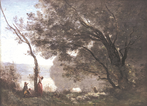 19世紀(jì)初,最早被吸引到巴比松的是風(fēng)景畫大師卡米耶·柯羅(Camille Corot,1796-1876)。他生于巴黎一個(gè)富商之家,得父母應(yīng)允和資助,自青年時(shí)期開始習(xí)畫,打下堅(jiān)實(shí)的傳統(tǒng)美術(shù)基礎(chǔ)。但是,他更傾向于露天寫生,自由地深入大自然,暢想描繪林中仙女和人身羊足、頭上長角的農(nóng)牧神,形成自身獨(dú)特的天然景色結(jié)構(gòu)。他以《塞納河岸》和《阿沃萊市郊》等作品稱稀,成為首位妙筆卓著的巴比松派畫家。