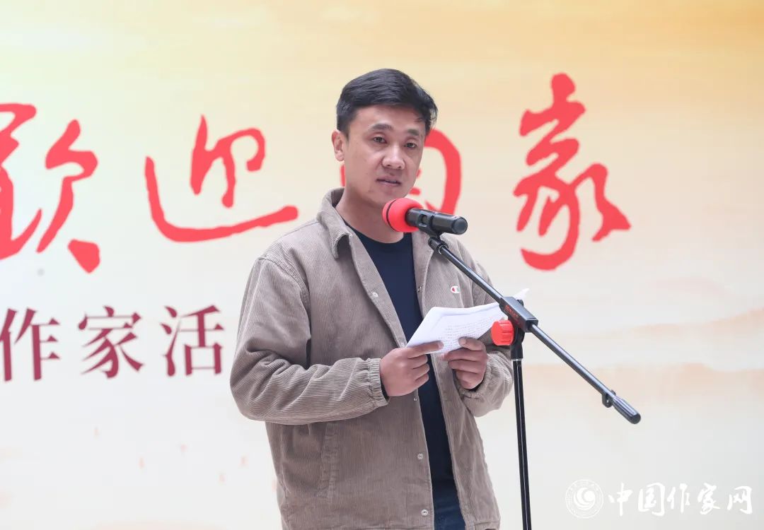 作家代表索南才讓在歡迎儀式上發(fā)言。索南才讓談到,在創(chuàng)作的道路上,很多作家都得到了中國(guó)作協(xié)實(shí)實(shí)在在的幫助和支持,他也是在中國(guó)作協(xié)的關(guān)心和愛護(hù)下不斷成長(zhǎng)、不斷提高的。希望中國(guó)作協(xié)團(tuán)結(jié)作家朋友的優(yōu)良傳統(tǒng)能一直延續(xù)下去,讓更多成長(zhǎng)中的作家得到庇護(hù)與幫助,讓大家在最艱難、最需要的時(shí)候,因?yàn)橛兄袊?guó)作協(xié)而奠定堅(jiān)實(shí)的基礎(chǔ),從而走得更高更遠(yuǎn)。