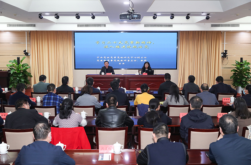 張宏森指出,黨章是黨的根本大法,是全黨必須遵循的總規(guī)矩。黨的十八大以來,以習(xí)近平同志為核心的黨中央高度重視制度治黨、依規(guī)治黨,加強(qiáng)頂層設(shè)計和統(tǒng)籌規(guī)劃,密集出臺黨內(nèi)法規(guī)制度,加快構(gòu)建和完善黨內(nèi)法規(guī)體系,開辟新時代依規(guī)治黨新境界。學(xué)習(xí)貫徹黨章黨規(guī),是加強(qiáng)黨的建設(shè)的一項基礎(chǔ)性經(jīng)常性工作,也是全黨同志的應(yīng)盡義務(wù)和莊嚴(yán)責(zé)任,是深入學(xué)習(xí)貫徹黨的二十大精神、扎實推進(jìn)新時代黨的建設(shè)新的偉大工程,進(jìn)而全面推進(jìn)黨和國家各項事業(yè)發(fā)展的需要。