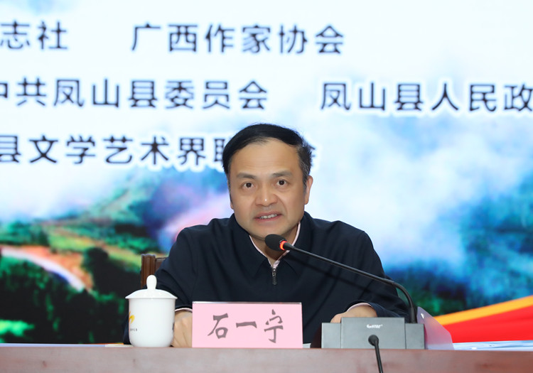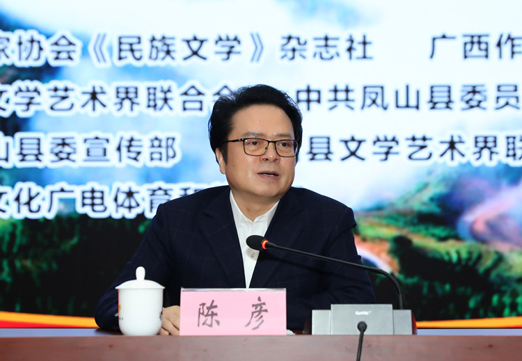 3月31日至4月3日,由《民族文學(xué)》雜志社、廣西作家協(xié)會(huì)、廣西河池市文聯(lián),中共鳳山縣委、縣人民政府主辦的“新時(shí)代 新征程——《民族文學(xué)》創(chuàng)閱中心河池現(xiàn)場(chǎng)經(jīng)驗(yàn)交流會(huì)暨多民族文學(xué)名家走進(jìn)鳳山”活動(dòng)在廣西鳳山縣舉行。中國(guó)作協(xié)黨組成員、副主席、書記處書記陳彥,《民族文學(xué)》主編石一寧,廣西文聯(lián)主席、作協(xié)主席東西,中共河池市委常委、宣傳部長(zhǎng)孔獻(xiàn)玲,河池市文聯(lián)黨組書記、主席潘紅日,《民族文學(xué)》副主編楊玉梅,中共鳳山縣委書記薛海源、縣人民政府縣長(zhǎng)楊勝濤、縣人大常委會(huì)主任羅國(guó)照、縣政協(xié)主席韋海山,縣委副書記黎舉孟,以及牙韓彰、潘靈、石朝雄、興安、巴桑、韋秀觀、李卓瑪?shù)榷嗝褡遄骷?,《民族文學(xué)》創(chuàng)閱中心負(fù)責(zé)人及作家代表,河池市和鳳山縣作家代表、部分文學(xué)愛好者參加本次活動(dòng)。
